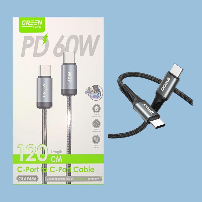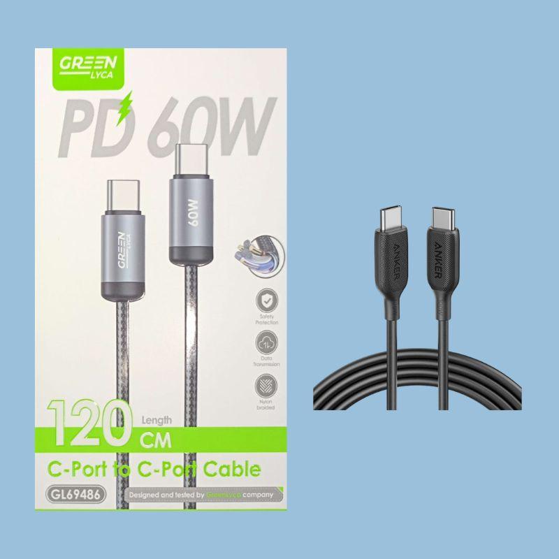 Green Lyca 60W Type-C to Type-C Cable
