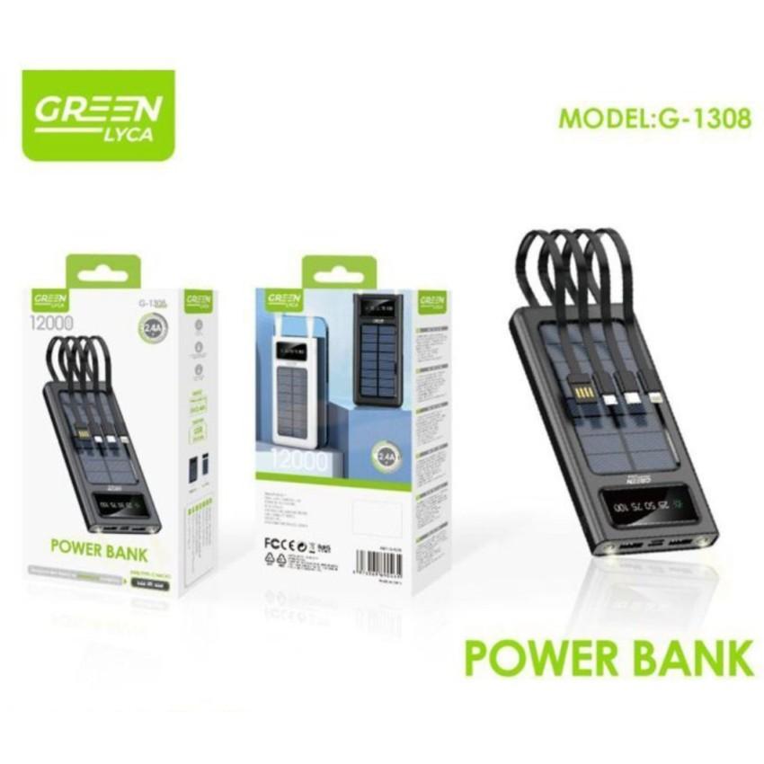 Green Lyca G-1308 Solar Edition | 12000mAh Multi-Cable Power Bank โ๏ธ๐