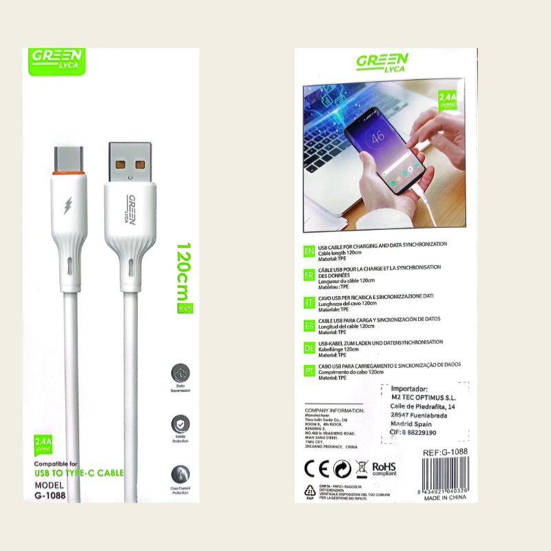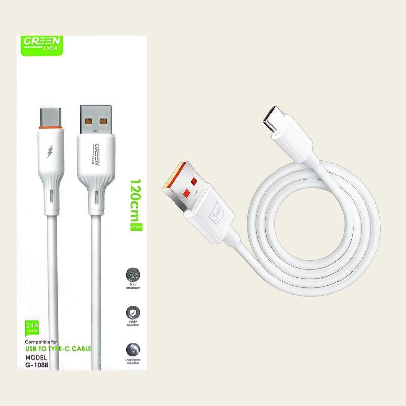 Green USB to Type-C Charging Cable
